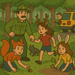 In het bos wonen veel verschillende wilde dieren. De boswachter kent ze allemaal en weet precies waar de dieren leven in het bos. In dit spel kruip jij in de huid van een wild dier en je gaat op jacht naar eten, maar pas op voor de gevaren!